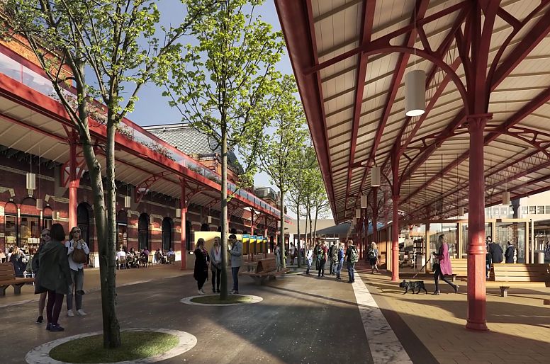 Op de plekken waar eerder sporen lagen, ligt een nieuw perronplein. Reizigers kunnen dan ook weer droog op hun trein wachten: de historische perronkappen zijn ook weer teruggeplaatst. Wel wordt er her en der nog op het plein gewerkt.