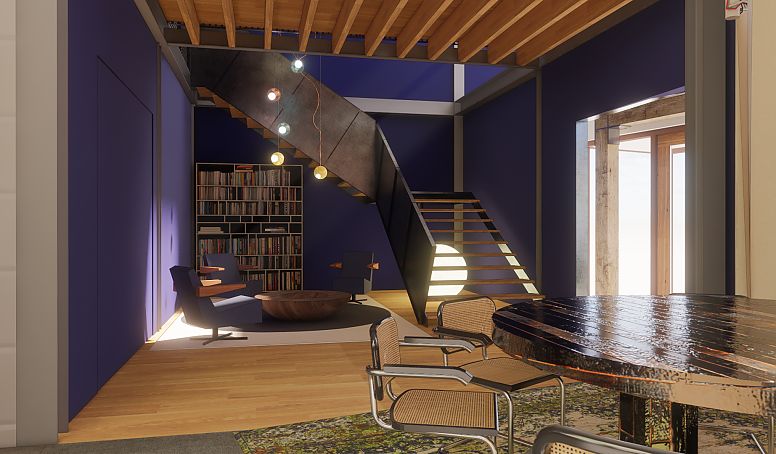 De kantoren die al in Maupertuus zaten, worden ook vernieuwd. Daarnaast komen er kantoorruimtes bij, in het voormalige magazijn van VOS design. Dat is naar ontwerp van architectenbureau De Zwarte Hond, die zich over de hele transformatie van Maupertuus heeft gebogen. “Het dak wordt losgesneden, gelift en er komt een extra verdieping in”, legt Bart uit. “Dat is toch te gek. Wat een knappe herontwikkeling.” MWPO houdt er ook rekening mee dat het pand z’n iconische uitstraling behoudt. “Het gebouw heeft een heel karakteristieke vorm”, zegt Kristiaan. “Vanaf de A7 lacht de twaalf meter hoge windvaan van Ingo Maurer je al toe.” En dat blijft ook zo. “De Zwarte Hond heeft een ontwerp gemaakt waarin de punten aan de voorkant van het gebouw worden doorgetrokken naar het nieuwe horecagedeelte”, zegt Bart.