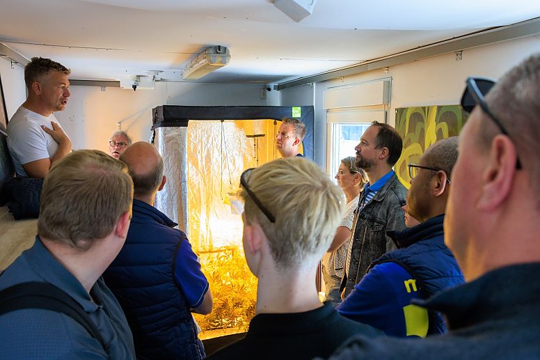 Het was een drukte van belang vrijdagmorgen bij de Makro op het bedrijventerrein Zuidoost. Daar staat een container waarin rondleidingen worden gegeven aan medewerkers van bedrijven en wordt getoond hoe geraffineerd drugscriminaliteit is. En hoe je, soms door te ruiken, soms door op te letten, kunt zien of ergens illegaal hennep wordt geteeld.