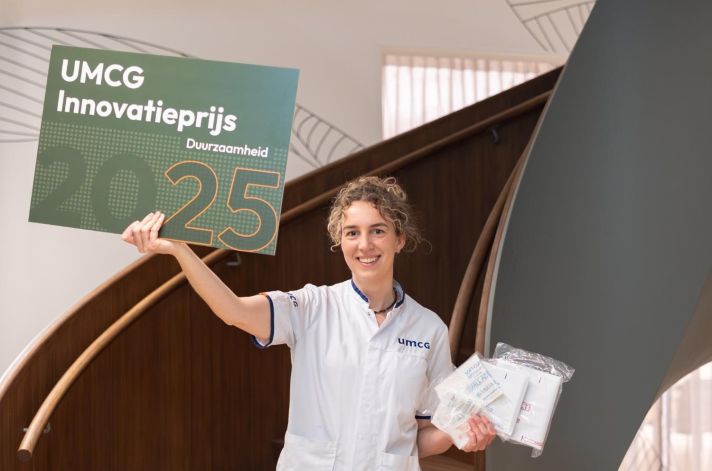 Met haar idee won Femke Lijzenga de Innovatieprijs Duurzaamheid 2025: een jaarlijkse prijs waarmee het UMCG medewerkers stimuleert om met vernieuwende ideeën te komen die bijdragen aan de UMCG-ambitie om circulair en klimaatneutraal te worden.